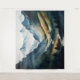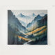 Cette tapisserie horizontale captivante présente une scène montagneuse à couper le souffle, magistralement rendue dans des tons bleus et bronzés apaisants qui évoquent un sentiment de sérénité et d'émerveillement. Au coeur de la composition, un ruisseau cristallin serpente gracieusement le long de la montagne, ses eaux reflétant la teinte azurée du ciel, créant un mélange harmonieux de couleurs qui respire la tranquillité. Les montagnes, dépeintes dans des tons différents de bronze, s'élèvent majestueusement sur le fond, leurs pics touchant le ciel, suggérant à la fois leur grandeur et la beauté intemporelle de la nature.