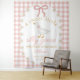 Perfect for a baby girl shower, goose themed baby shower, soft pink gingham baby shower, preppy baby shower theme, or vintage inspired celebration, this personalized baby shower backdrop tapestry brings charm, warmth, and timeless style to your event while creating a beautiful setting for photos you’ll treasure forever.
