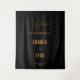 Simple Élégant Noir Écriture Calligraphique Mariage Toile de Fond Bannière. Une bannière noire avec un design élégant et stylé qui présente un message "Bienvenue" calligraphié. Design simple avec écriture et polices tendance. Personnalisez tout le texte sur la bannière, y compris les noms des mariés et la date du mariage.
