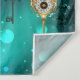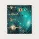 Or, clés antiques avec engrenages et cadrans accrochés sur chaînes dorées sur arrière - plan vert lumineux.