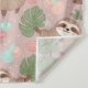 Step into a slow and serene jungle with this utterly charming seamless pattern featuring the most delightful sleepy sloths! Curled up and smiling on tropical branches, these sweet creatures are surrounded by lush Monstera leaves, pretty pink hibiscus flowers, and whimsical pastel swirls.