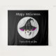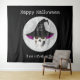 Créez votre propre fond pour photos pour la soirée d'Halloween avec cette scène de tapisserie effrayante "Joyeux Halloween". Le design présente un crâne de sorcière effrayant portant un chapeau pointu noir "Trick or Treat" et une pleine lune sur fond noir. Les citations d'Halloween "Joyeux Halloween" et "Je vous jette un sort" sont écrites en police blanche. Ce fond de tapisserie est disponible en plusieurs tailles différentes. Affiché ici en taille extra large.