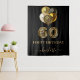 Une tapisserie pour une fête d'anniversaire glamour de 60 ans. Un fond noir, décoré de ballons. Avec le texte : Joyeux Anniversaire. Personnalisez et ajoutez un nom. Le nom est écrit en or rose foncé avec un style de lettrage à la main moderne avec des fioritures. Le numéro 60 est écrit avec une police de style ballon tendance, motif léopard. Pour garder les fioritures, supprimez uniquement le nom de l'exemple, laissez les espaces ou les émojis devant et après le nom. Peut être utilisé comme bannière de bienvenue, décoration murale pour la fête ou comme toile de fond pour un photomaton.