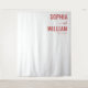 This wedding backdrop features a minimalist design with a clean, centered layout that emphasizes elegance and simplicity. The color palette includes a bold red for the main text and a soft grayish-red for secondary details, creating a sophisticated and romantic atmosphere. The typography combines large, uppercase serif letters with delicate cursive script, ensuring a modern yet classic look. Perfect for weddings, this versatile design focuses on clarity and timelessness, making it an ideal choice for couples seeking understated beauty.
