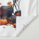 A Halloween-themed image featuring a large orange full moon with silhouetted bats flying across it. In the center of the moon, there is a large square root symbol over the number 4489. Below the moon, three glowing carved jack-o'-lanterns sit among rocks, fallen autumn leaves, and dried tree branches. The overall atmosphere is spooky and festive, combining mathematical elements with a holiday scene.