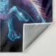 une sorcière squelettique chevauchant une Tapisserie imaginaire dragon. Le style mêle des éléments de l'art néon et des thèmes célestes, créant une composition dynamique et visuellement frappante qui met l'accent à la fois sur le mystique et le surréaliste. La sorcière et le dragon ont tous deux des éléments crâne à sucre, ce qui en fait une pièce unique. Ajoutez un dicton éffrayant ou drôle pour customiser la tapisserie pour en faire votre propre. C'est parfait pour Halloween ou n'importe quelle période de l'année.