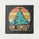 Sur Christ le Rocher Solide I Stand, ce design chrétien présente un look Reto coucher de soleil avec une croix chrétienne et un texte disant, "Sur Christ le Rocher Solide I Stand".