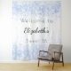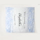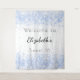 Une tapisserie de bienvenue pour une soirée Sweet 16, 16e anniversaire girly et glamour. Un arrière - plan à l'aspect métallique faux argenté décoré de gouttes de parties scintillant en faux bleu. Personnalisez et ajoutez un nom et un âge. Lettres noires.