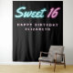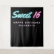 Cool et moderne 16ème anniversaire tapisserie avec "Sweet 16" écrit en rose chaud et turquoise avec un effet néon lumières contre un arrière - plan noir. Vous pouvez customiser avec son nom. Une zone vierge en bas permet aux clients de prendre des photos en arrière-plan.