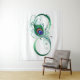 Le symbole de l'infinity with a bright, green, artistic peacock feather on a white background. Tattoo style.