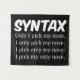 Illustration de typographie amusante qui a le mot syntaxe, puis quelques phrases expliquant l'importance du placement de mots lorsque vous écrivez. Le design amusant est de cueillir votre nez. Le mot est déplacé à des positions différentes dans la phrase pour lui donner des significations différentes. Je ne choisis que mon nez. Il s'agit d'un design qui conviendra à toute personne qui apprend ou enseigne l'anglais.