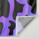 Tendance taches de vache noires et blanches ou motif dalmatien avec des porte-bonheur en forme de fer à cheval en or. Le fond présente des bandes colorées de nuances bleues avec une touche de vert clair et de violet clair et foncé.