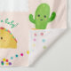 Vous organisez une baby shower sur le thème des tacos ? Vous allez adorer cette tapisserie de bienvenue colorée "Taco bout a baby" pour baby shower. Avec des personnages de tacos, de cactus et d'avocats extrêmement mignons et des guirlandes lumineuses colorées en haut et en bas. Le texte indique "Welcome [nom de la maman] Baby Shower" avec "Taco bout a baby" en dessous. Facile à personnaliser avec vos propres détails et couleurs.