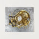 Tête conceptuelle, mécanique, humaine avec manomètre antique et engrenages métalliques contre arrière - plan industriel gris. Style Steampunk.