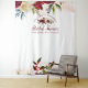 Manoir de gui Aquarelle Dessin de roses hivernales luxuriantes avec fleurs peintes à la main, feuilles de houx à baies, feuillage de brindilles de pin. Marsala coloré, vin Merlot Rouge, Bourgogne, crème ivoire et vert. Avec une typographie chic tourbillonnante, polices de caractères Brush Script, coups de pinceau aquarelle et bordure florale élégante - toile de fond de bienvenue pour mariage, shower de mariage, photographie, arrière-plan pour photomaton !
