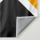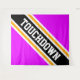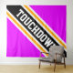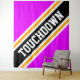 Cette conception sportive et footballistique présente un texte en TOUCHDOWN athlétique audacieux à l'intérieur d'une large bande de course en diagonale noire, blanche et jaune doré contre des rayures extérieures vif et rose vif. Le texte de cette conception peut être personnalisé.