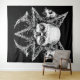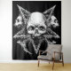 Cette oeuvre d'art détaillée présente trois crânes aux éléments gothiques complexes, parfaits pour les amateurs d'art sombre et macabre.
