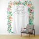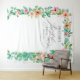 Cette tapisserie de mariage tropical floral crée le décor parfait pour la future mariée et vos photos de douche. Le design chic présente des fleurs aquarelles roses, corail et bleues peintes à la main, y compris l'hibiscus avec de la verdure sur un fond blanc avec votre nom et les mots "Mariage" en typographie script moderne avec la date de votre douche pour personnaliser. Conçu par Susan Coffey.