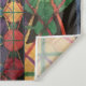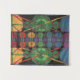 L'oeuvre de l'image est un design géométrique dynamique et complexe. Il présente une série de formes et de motifs interconnectés, principalement composés de cercles, de triangles et de lignes. Le design est symétrique et s'étend horizontalement sur un arrière - plan noir. Les cercles sont remplis de différentes couleurs, dont le violet, le bleu, le vert, le jaune et le rouge, créant un effet dégradé d'une extrémité à l'autre. Chaque cercle est entrelacé par des lignes formant des motifs étoiles, et les cercles sont reliés par un réseau de lignes qui créent un sentiment de profondeur et de complexité. L'ensemble est frappant visuellement, les couleurs vives contrastant fortement avec l'arrière - plan foncé, ce qui fait ressortir les motifs géométriques. Cette oeuvre est intéressante en raison de son utilisation de symétrie, de dégradés de couleurs et de travaux de ligne complexes, qui ensemble créent une expérience visuelle dynamique et attrayante.