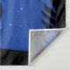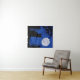 Tapisserie dans une silhouette de chat, regardant une pleine lune dans un ciel étoilé bleu profond