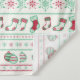 Une grande tapisserie avec un motif extensible dans l'arrière - plan, dans un laide style pull de Noël. Le motif est composé de chaussettes, boules de noël, étoiles et flocons de neige. Avec répéter Joyeux texte de Noël en rouge. Amusant et festif.