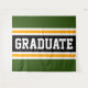Ce design sportif et athlétique présente un texte GRADUATE en gras à l'intérieur d'une large bande noire mise en évidence avec des doubles bandes de course blanches et jaunes orange sur des bandes extérieures vert forêt. Le texte de ce design peut être personnalisé.