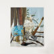 Le chat norvégien de la forêt assis près d'un arbre avec un dragon bleu assis dans un casque de bouteille. Neige autour d'eux, épée et hache viking avec eux.
