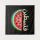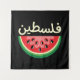Watermelon Palestine will be Free Une pastèque en tranches montre les couleurs du drapeau palestinien — rouge, vert, noir et blanc. Comme le port et l'affichage du drapeau palestinien ont souvent été interdits par les autorités israéliennes, une pastèque est utilisée pour la symboliser.