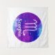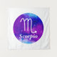 Ajoutez des vibes célestes à votre décor avec cette belle tapisserie en zodiaque Scorpio. Il a un design coloré de nébuleuse espace avec des étoiles. Le signe pour Scorpio est audacieusement affiché en blanc.