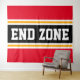 Cette conception sportive et sportive présente du texte en gras END ZONE à l'intérieur d'une large bande noire surlignée avec deux bandes de course blanches et jaunes contre des bandes extérieures rouge vif. Le texte de cette conception peut être personnalisé.
