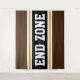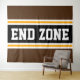 Cette conception sportive et sportive présente du texte en gras END ZONE à l'intérieur d'une large bande noire surlignée avec deux bandes de course blanches et jaunes contre des bandes extérieures brun foncé. Le texte de cette conception peut être personnalisé.
