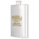 The product is a good size and came exactly as it was pictured. The lid is not attached to the flask, which could be dangerous on drunken nights... The print came out surprisingly well and looks very sharp. Would definitely recommend.
