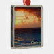 Square premium ornament with an image of a watercolor painting of a gorgeous red and gold sunrise over the ocean in Cancun, Quintana Roo, Mexico. See the entire Mexico Ornament collection in the HOME section.