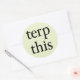 People who must engage an ASL interpreter or other third party to talk with nearly all the world might sometimes feel frustrated, annoyed, or simply cheeky and - like this design - shout 'terp this'! Choose your favourite background colour and be part of the art