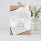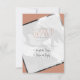 Theme Parties' minimalist casual wedding photo RSVP card design in terra cotta features your favourite engagement photo angled as a design element, giving your invitation modern geometric style. And your full-colour engagement picture is repeated on the reverse side. The design is accented with hand-lettered typography paired with modern block text. #MinimalistWedding #ModernWedding #PhotoInvitation #CasualWedding