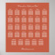 Terracotta 29 Table Wedding Seating Chart Poster, please personalize the names of the couple and the names of the guests along with any of the other text that you may wish to personalize. A stylish seating chart poster featuring elegant white text on a lovely terracotta colour background.
