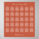 Terracotta 30 Table Wedding Seating Chart Poster, please personalize the names of the couple and the names of the guests along with any of the other text that you may wish to personalize. A stylish seating chart poster featuring elegant white text on a lovely terracotta colour background.