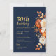 Wedding anniversary invitation navy blue and terracotta wedding colour theme with fall flowers. The text and colours can be edited.