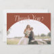 Elegant and minimal wedding thank you photo card featuring a large terracotta arch frame with a swirly serif font that says "thank you" at the top. You can add a second picture on the back with a message.