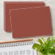 A fancy terracotta old money bright colorful wedding envelope. Which features bold bride and groom's names in beige color. And personalized return address. On auburn boho dusty terracotta color background. Which suits the whole old money luxury wedding suite.