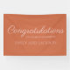 Celebrate the future Mr. and Mrs. with this modern terracotta engagement banner, designed with warm, earthy charm. The rich terracotta background pairs beautifully with soft blush pink script and classic serif typography for a clean and stylish look. Featuring the phrase “Congratulations on your engagement” and space to customize the couple’s names, this banner is perfect for rustic, boho, desert, or fall-themed celebrations. Use it as a photo backdrop, welcome sign, or statement decoration for your engagement party.