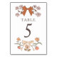 Numéro de table Boho et mariage rustique avec illustration dessinée à la main de rubans avec fleurs en couleur terre cuite.