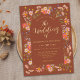 Rustic Fall Floral arch Wedding Invitation with Gold Script and burnt orange terracotta Background