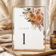 Terracotta Boho Rose Floral Wedding Table Numbers