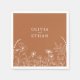 This wedding napkin features white line drawings of wildflowers on a terracotta background. This is part of a beautiful matching wedding suite including an invitation, menu, table number cards and other wedding essentials.