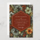 Rich terracotta hues and deep greens create an opulent floral backdrop. Lush botanicals and muted blossoms evoke a cozy, autumnal romance. This design blends sophisticated charm with natural beauty for a memorable occasion.