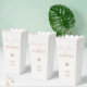 Modern minimal wedding popcorn favour boxes with chic and stylish appeal for late night wedding snacking. The design features a contemporary set of fonts in terracotta, against a lovely soft ivory background.