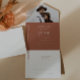 Modern and clean wedding invitation template featuring clean minimalist line with your initials. The background colour is terracotta.