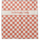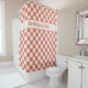 Add a bold accent to your bathroom decor with a custom shower curtain featuring a terracotta and cream chequered pattern made of rows of alternating off-white and burnt orange squares with your family name in a stylish terracotta script within a cream band 1/3 from the top.