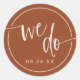 Handwritten calligraphy script with the phrase "we do" with long swashes on the ends of the letters. Shown in cream text on a terracotta background. Complements my wedding collection. Personalize the template with your wedding event. © Kimbellished, LLC